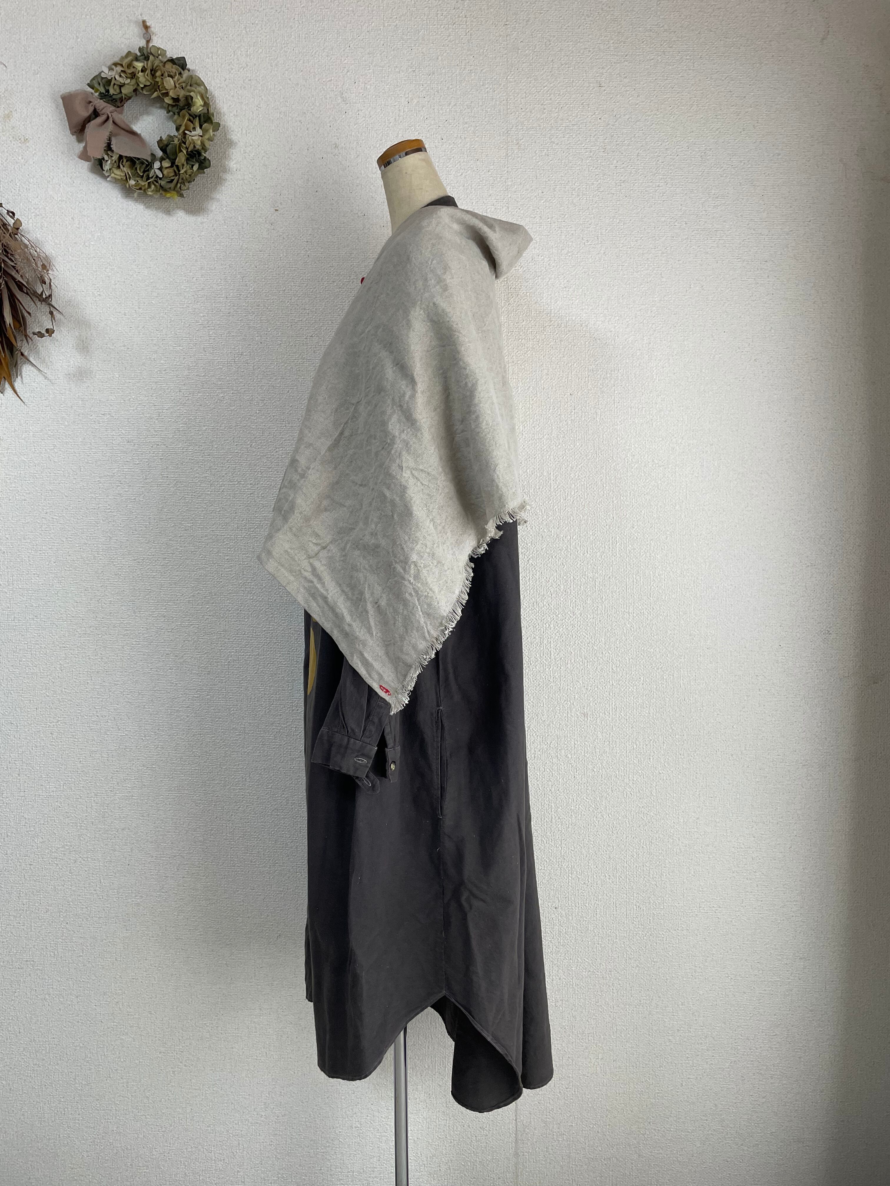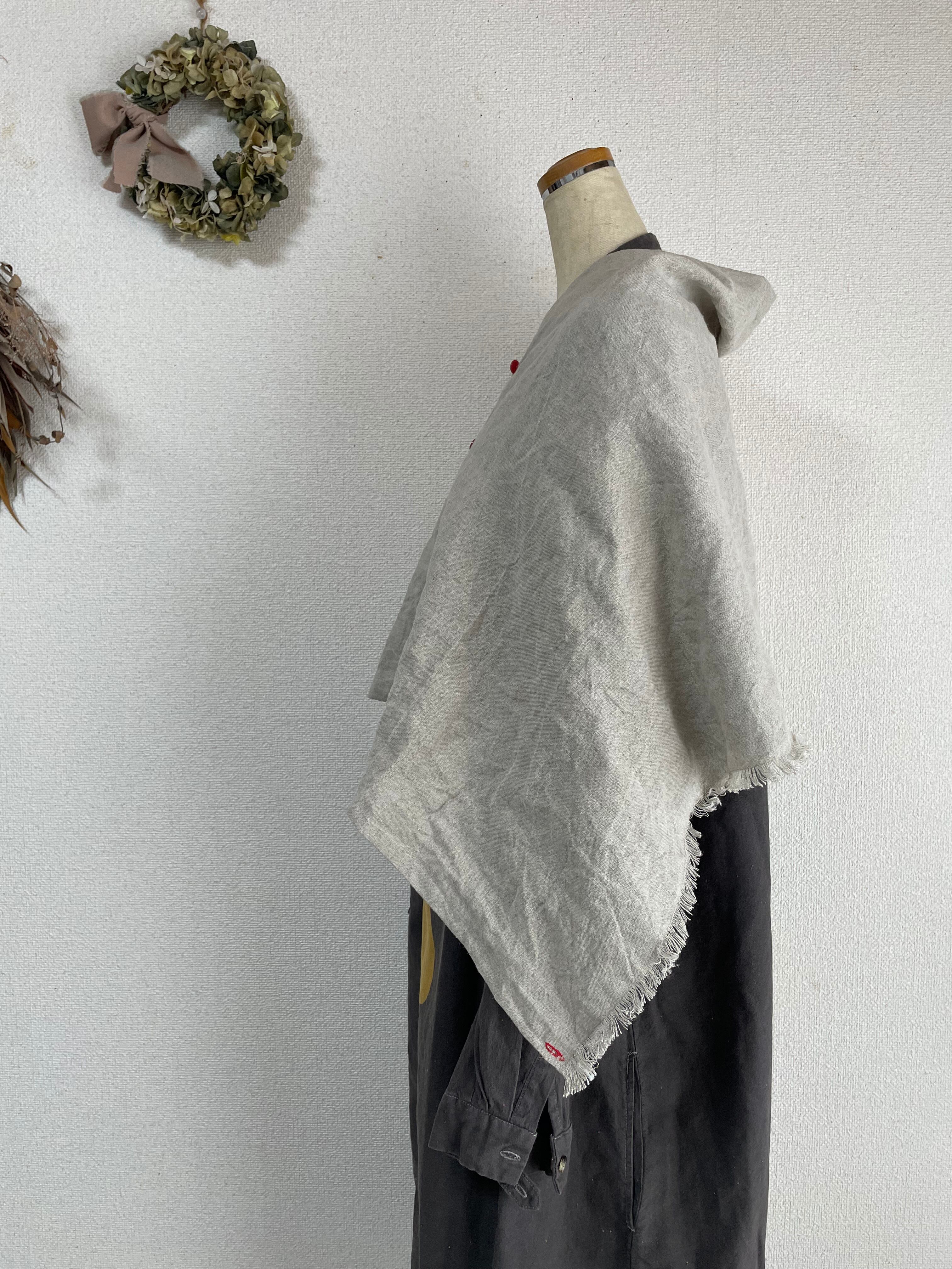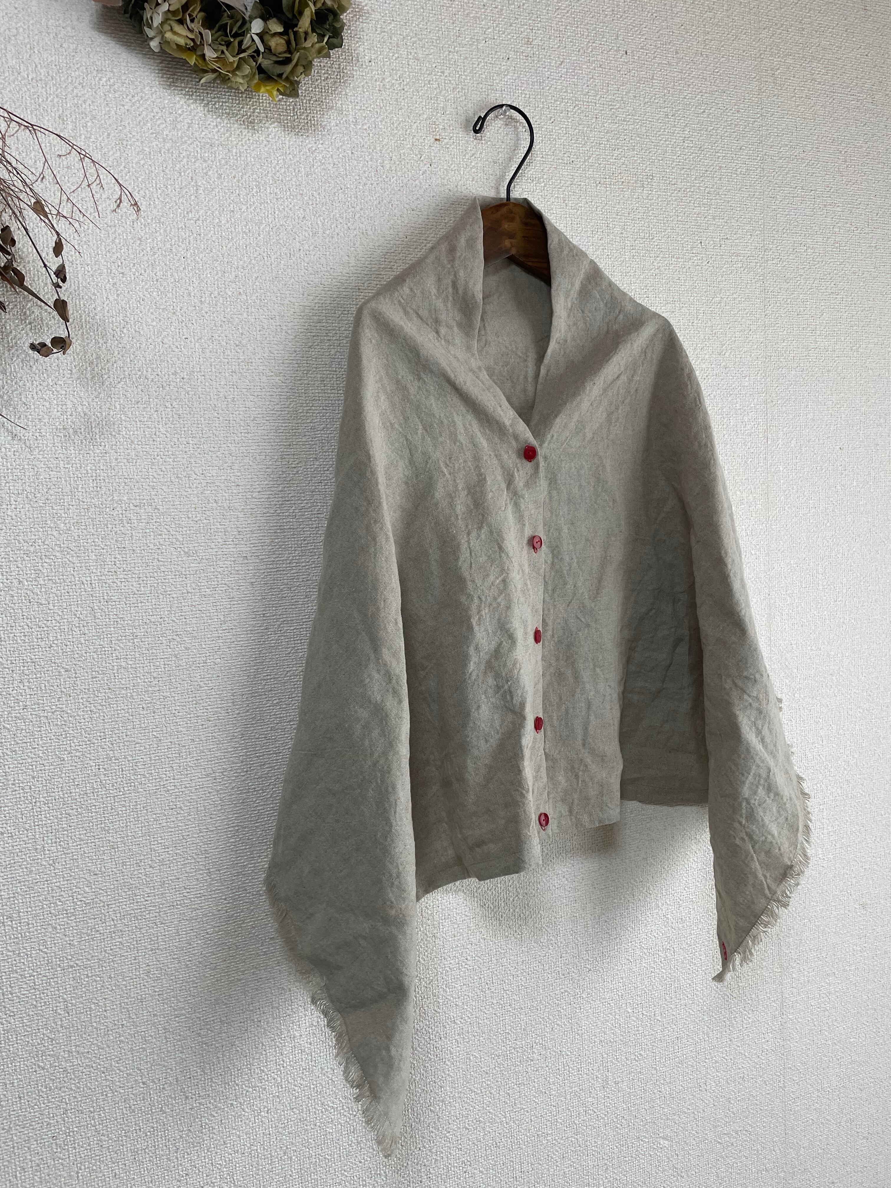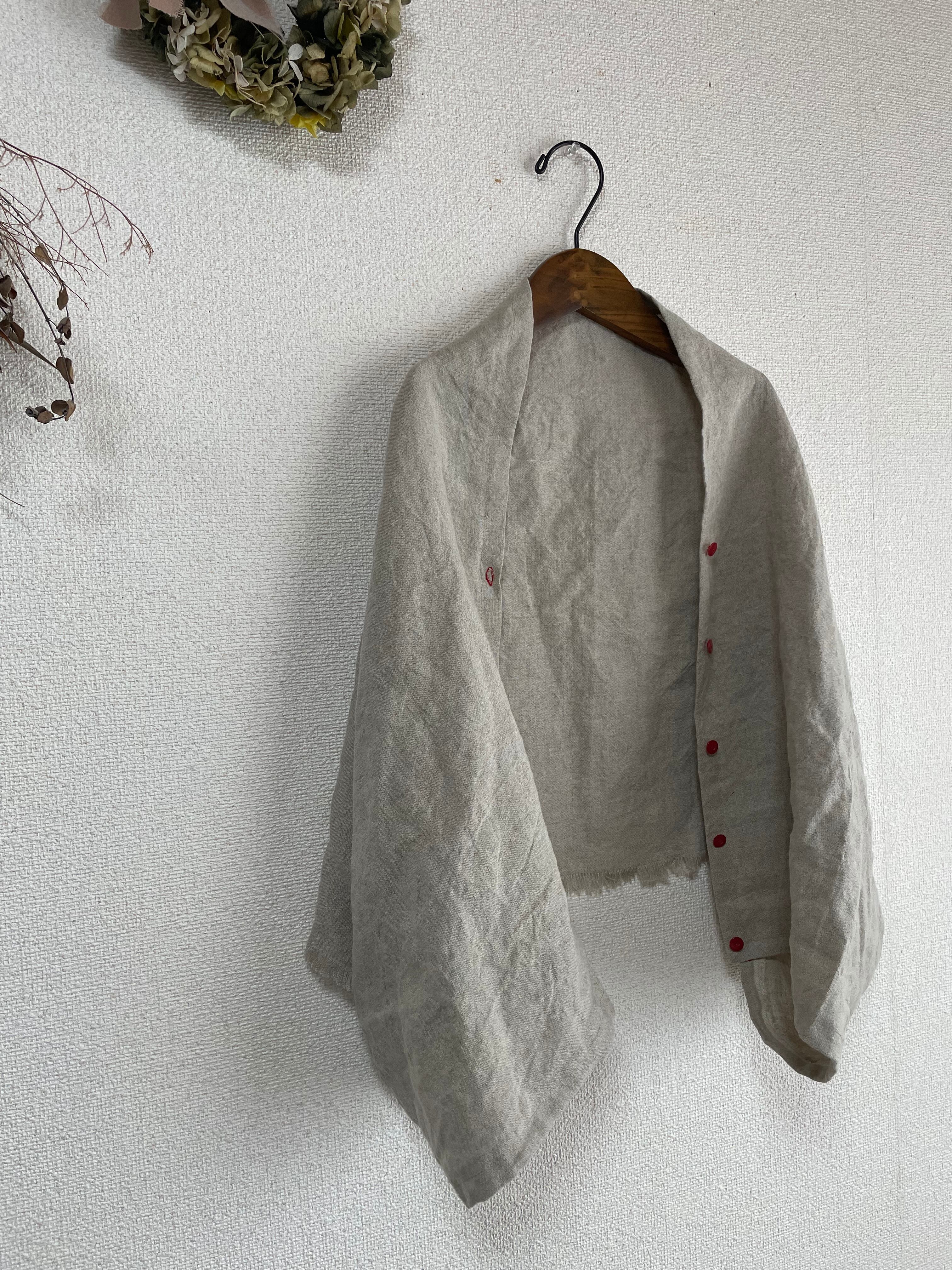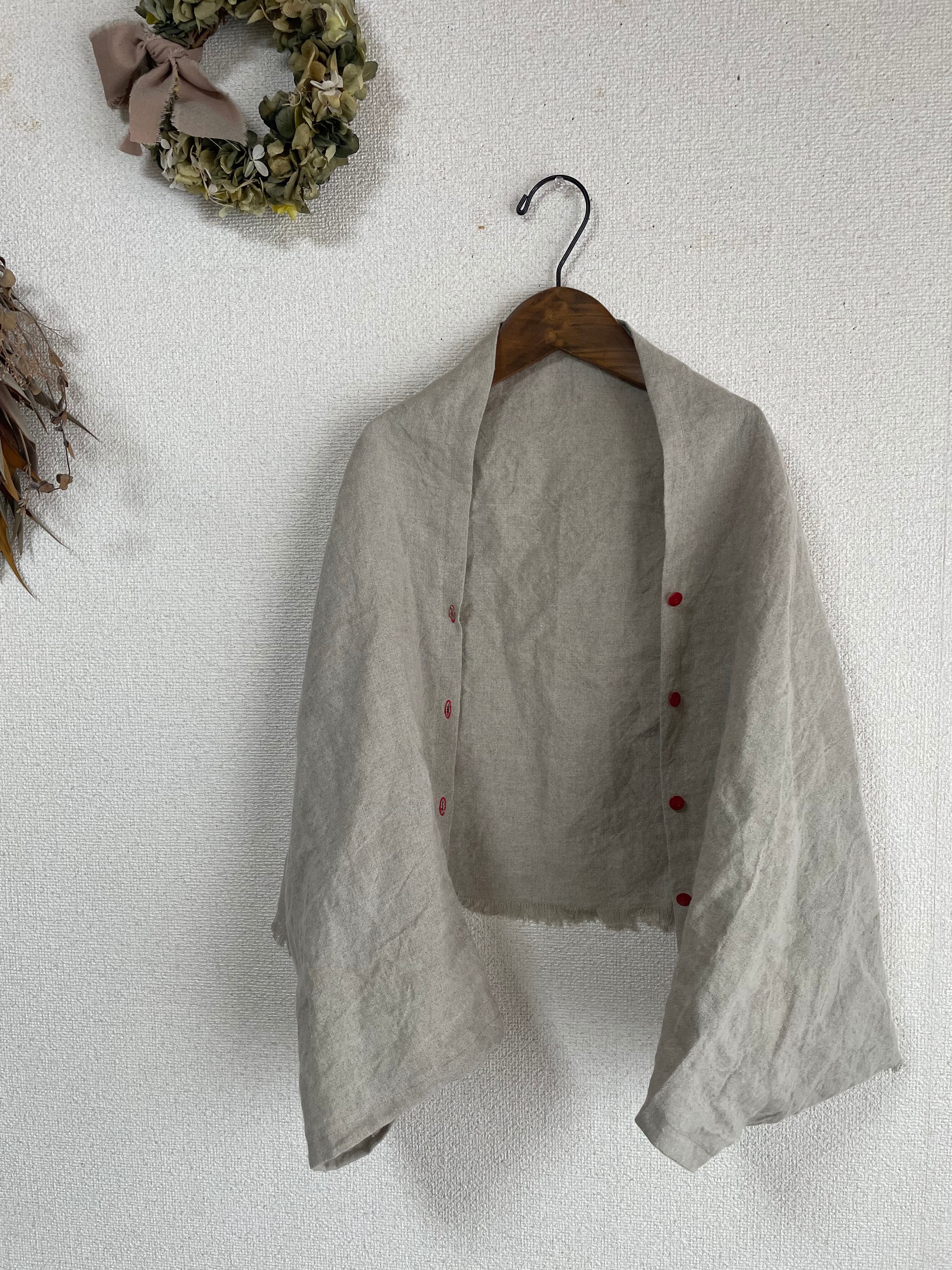 リネン100 #25 ストールボレロ キナリ 赤ボタン