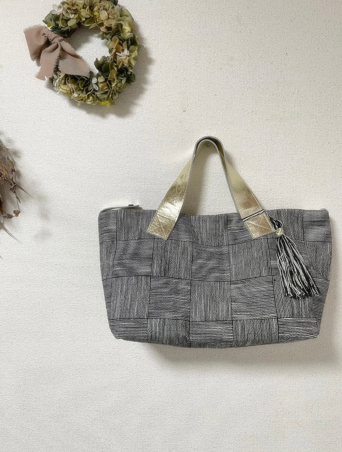 竹かごの編み模様「網代(あじろ)」を思わせる織り柄の生地を使い、