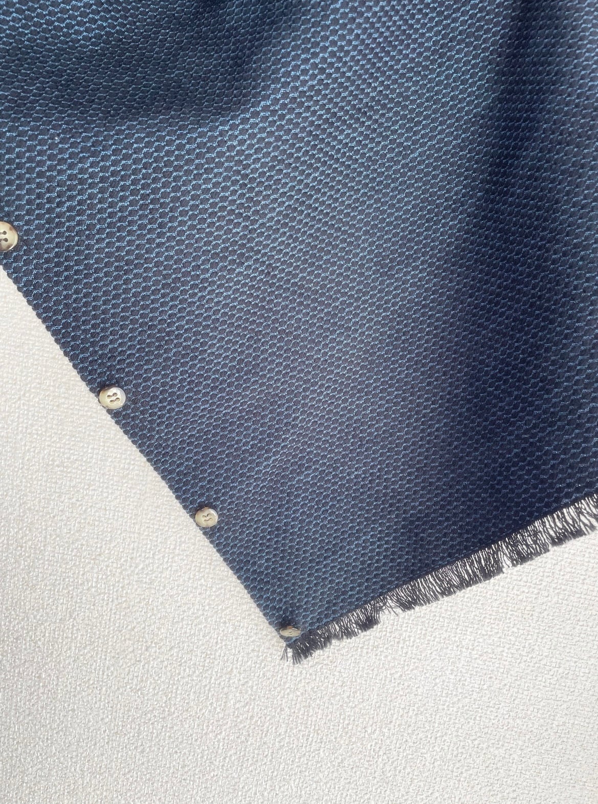 color navy (黒と青の糸から成る組織で織られたお色です)