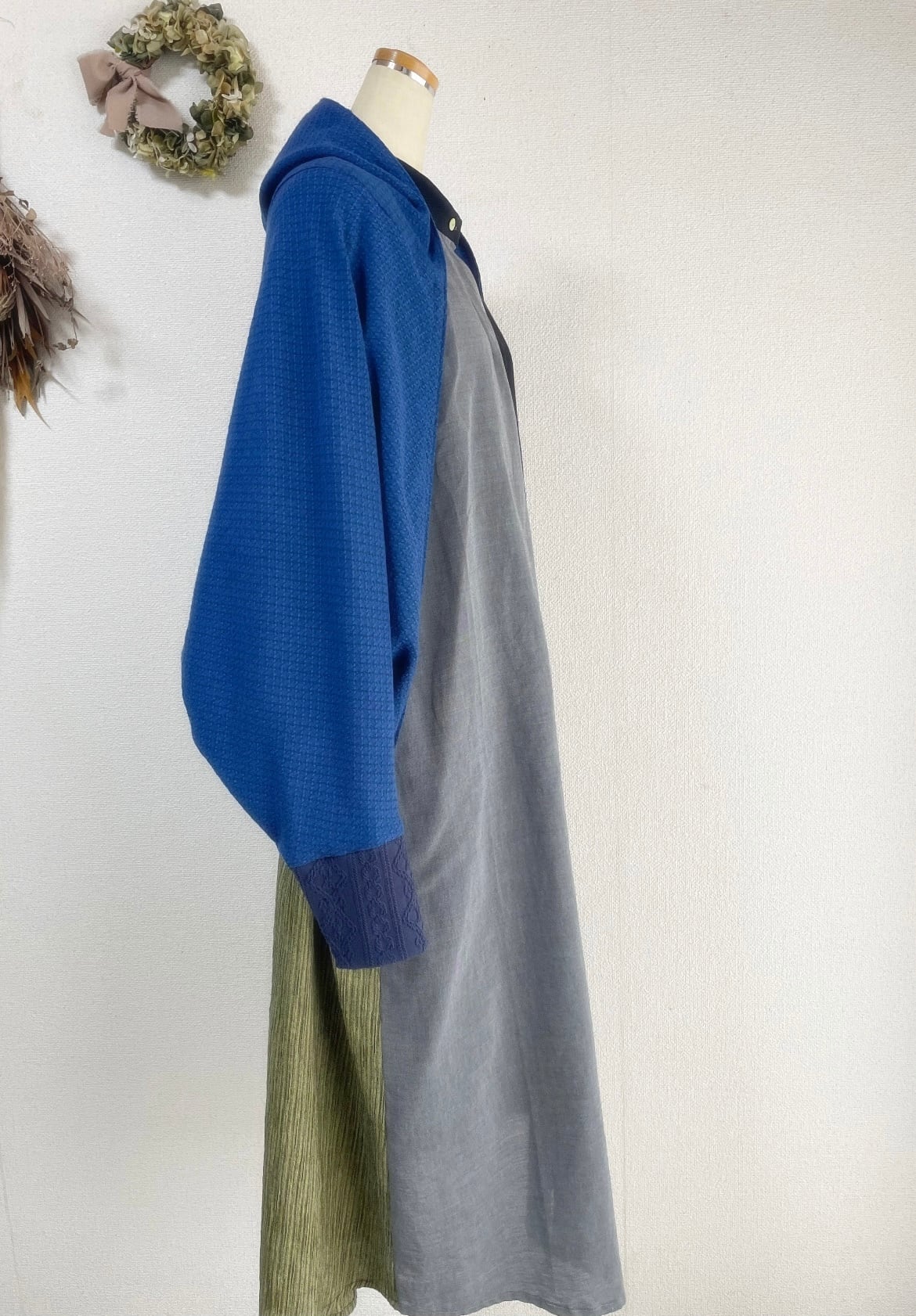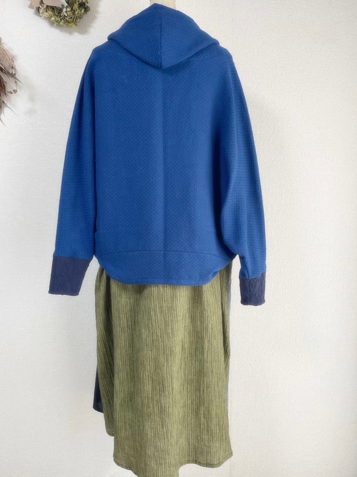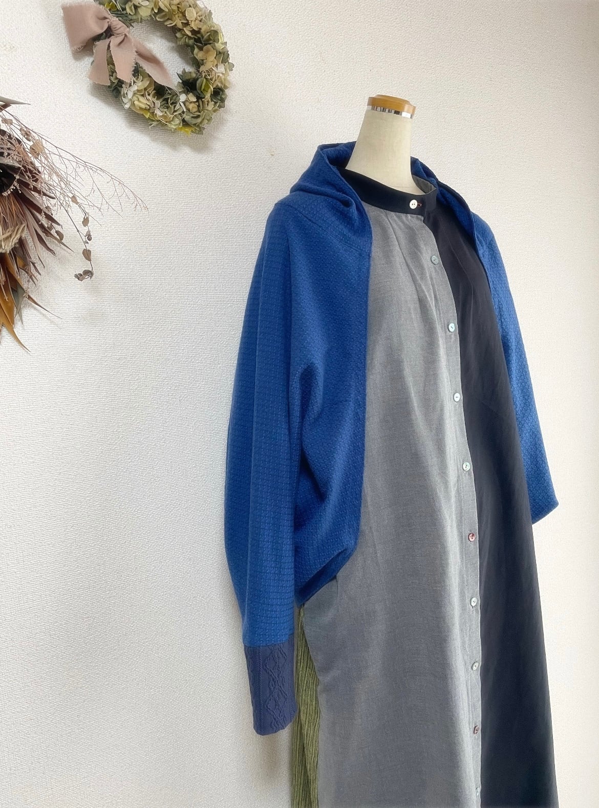 ドビーワッシャーとアランニットのドルマンパーカーロイヤルブルー