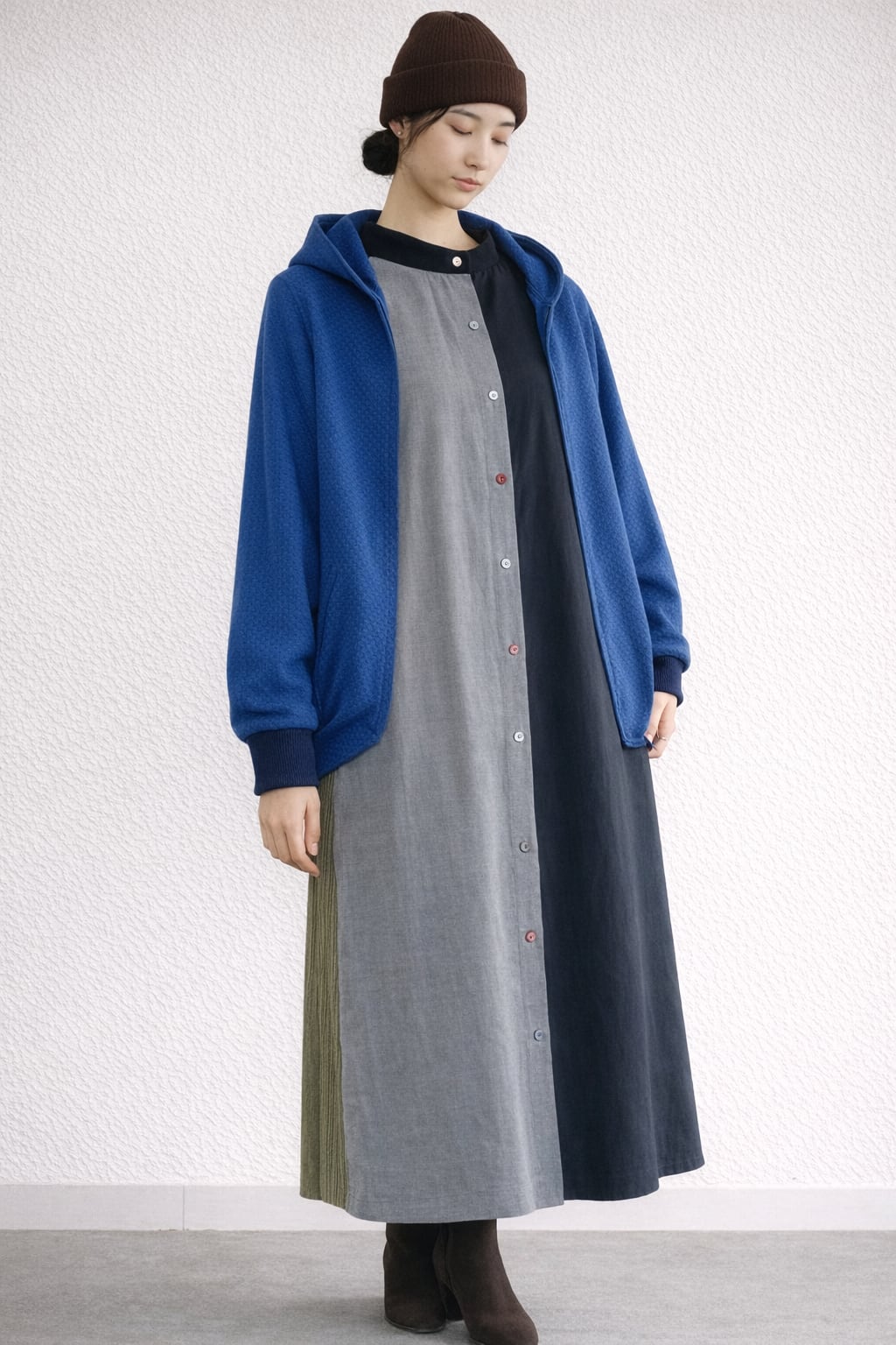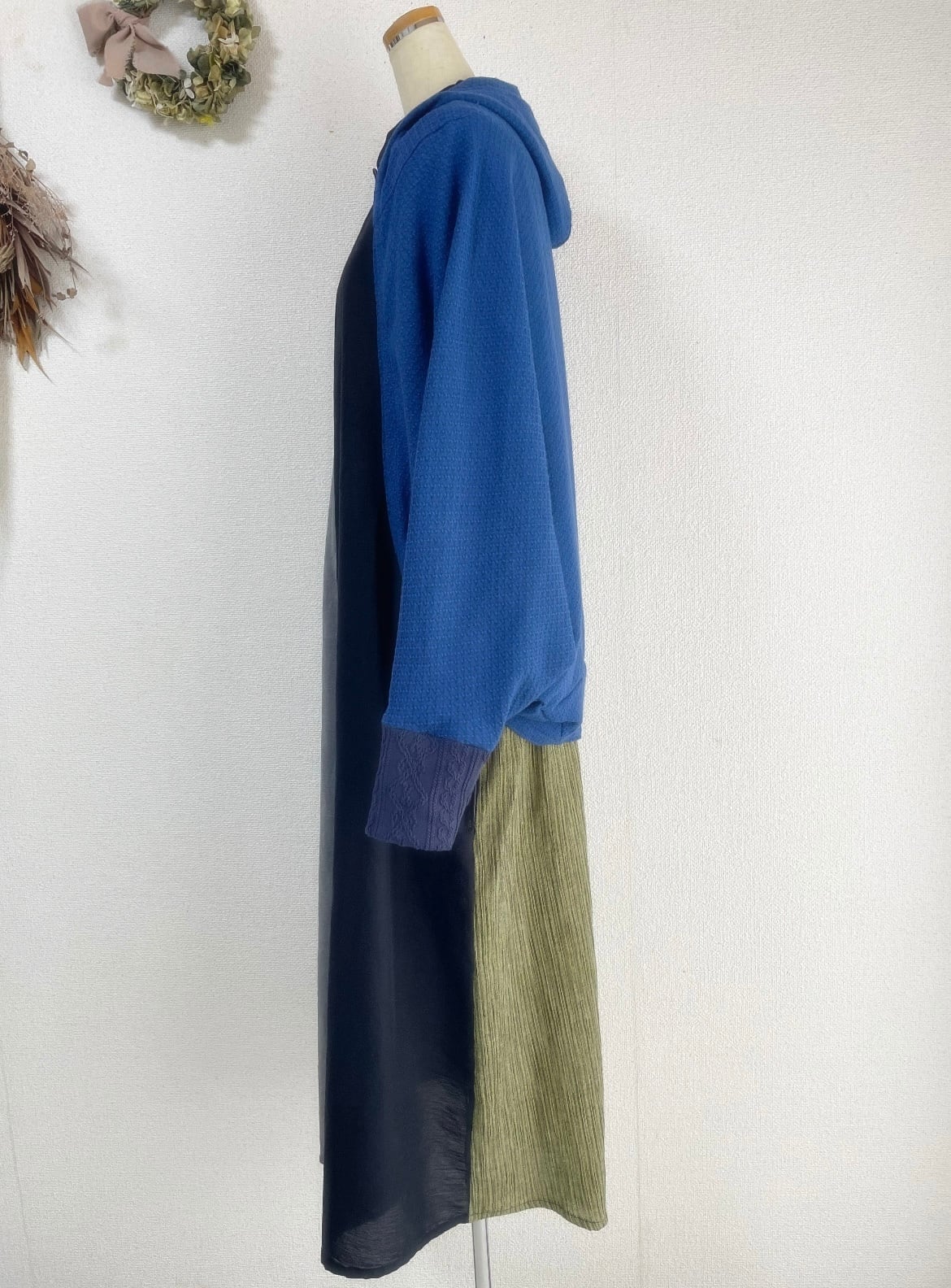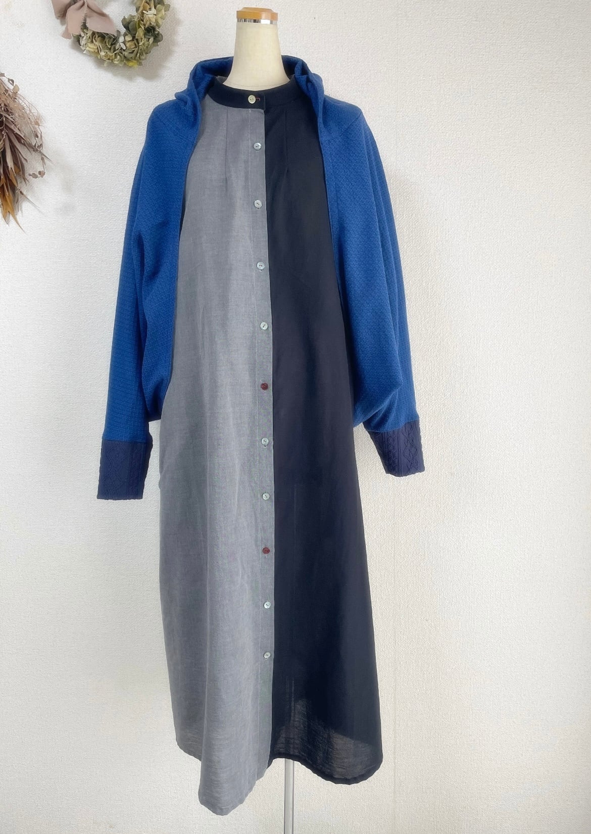 ドビーワッシャーとアランニットのドルマンパーカーロイヤルブルー
