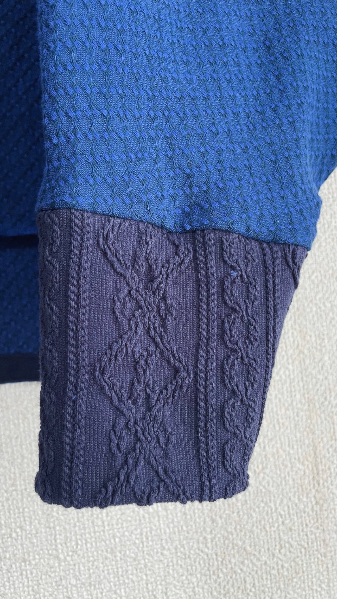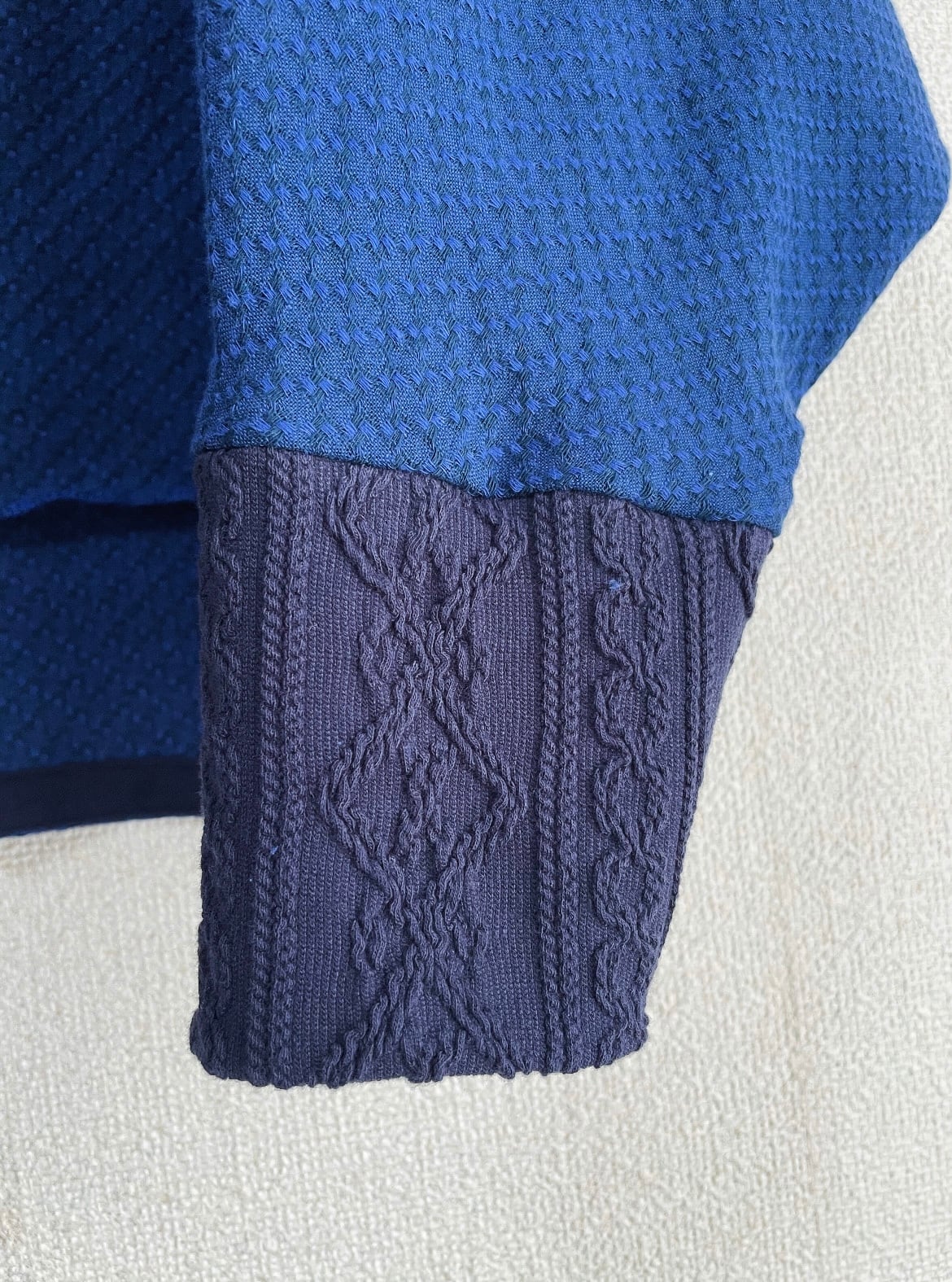 アラン編みのニットリブを組み合わせた、