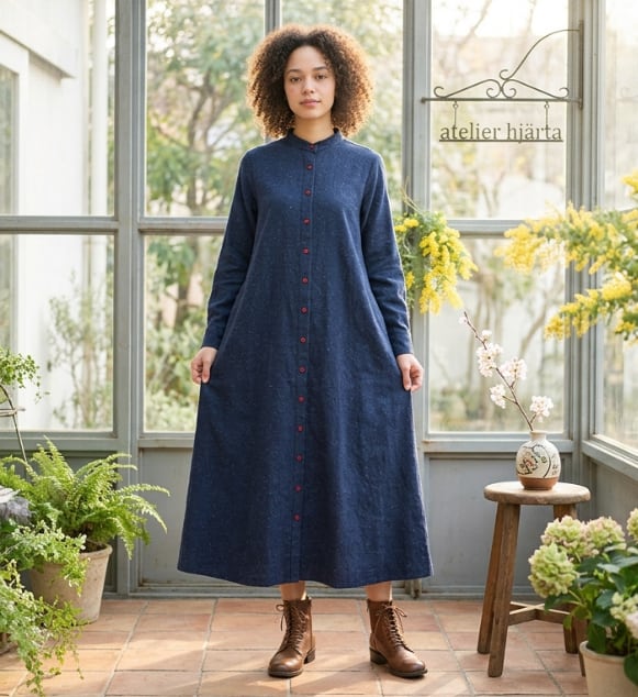 ネップミックスダンガリー シャツワンピース(Blue Grey Black)