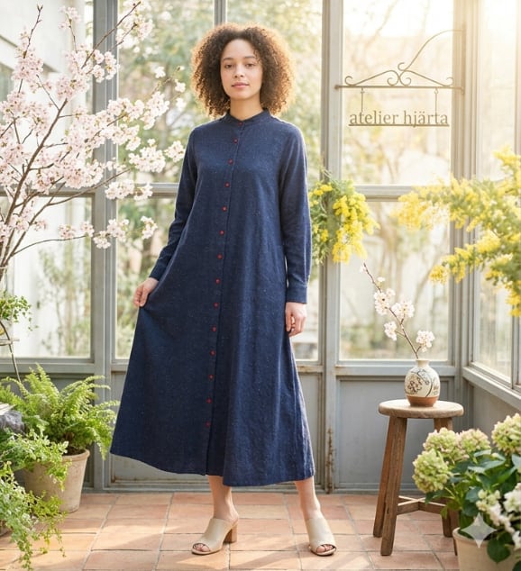 ネップミックスダンガリーのシャツワンピース。